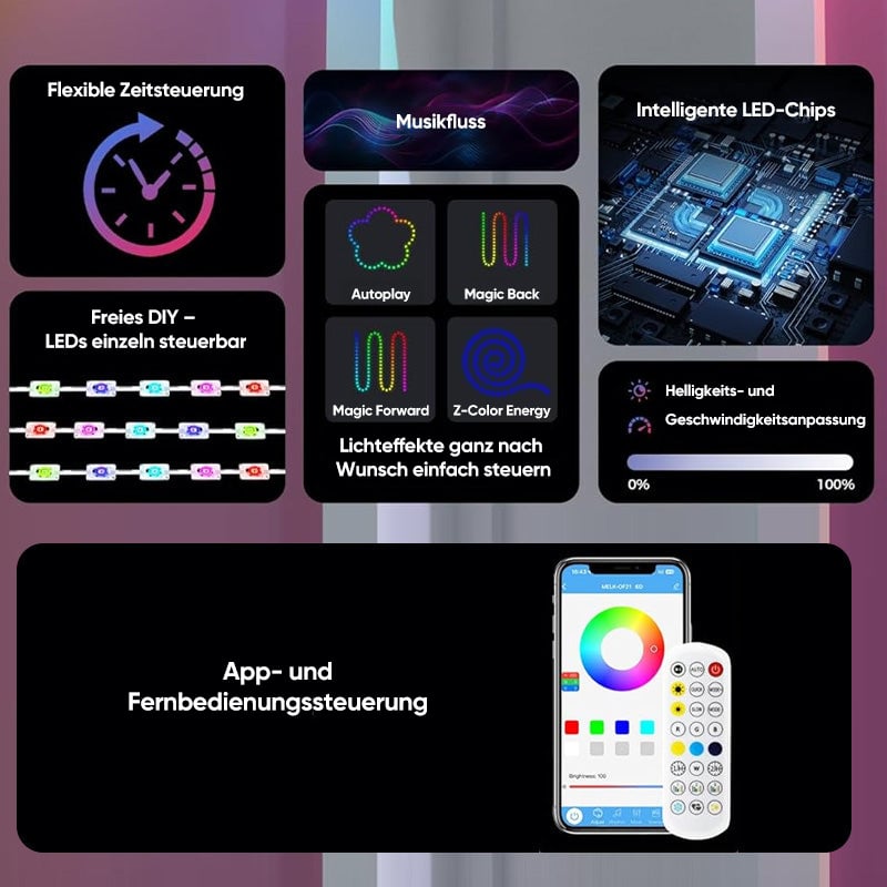 - Intelligente Zonen- & Sprachsteuerung: Steuern Sie alle Außenlichter in Ihrem Zuhause per App! Helligkeit, Farbe, Timer und Sicherheitsmodi individuell anpassen. Lichter mit Musik synchronisieren oder mit nur einem Klick atemberaubende Light-Shows erstellen!